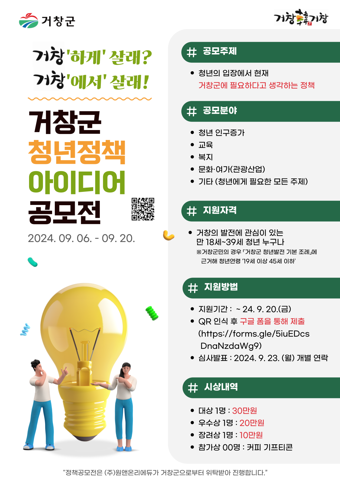 "정책공모전은 (주)원앤온리에듀가 거창군으로부터 위탁받아 진행합니다.”