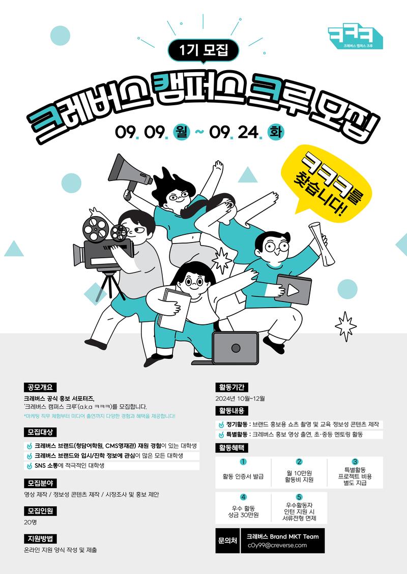 크레버스 공식 홍보 서포터즈, '크레버스 캠퍼스 크루'(a.k.a ㅋㅋㅋ)를 모집합니다.