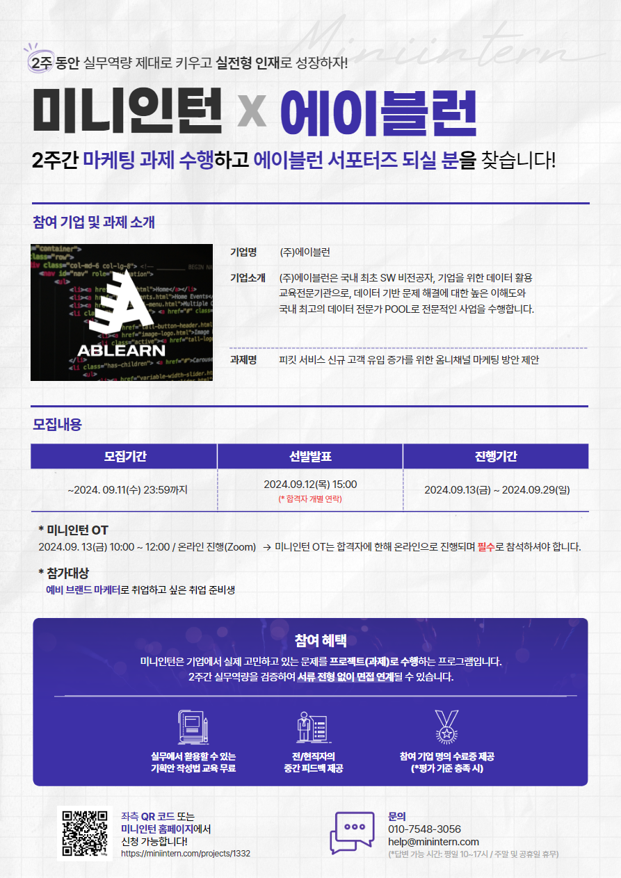 (*미니인턴 수료와 서포터즈 선발은 별도로 진행됩니다.)
