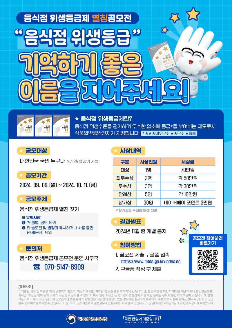 모두가 기억하기 좋은 음식점 위생등급제만의 별칭을 지어주세요!
