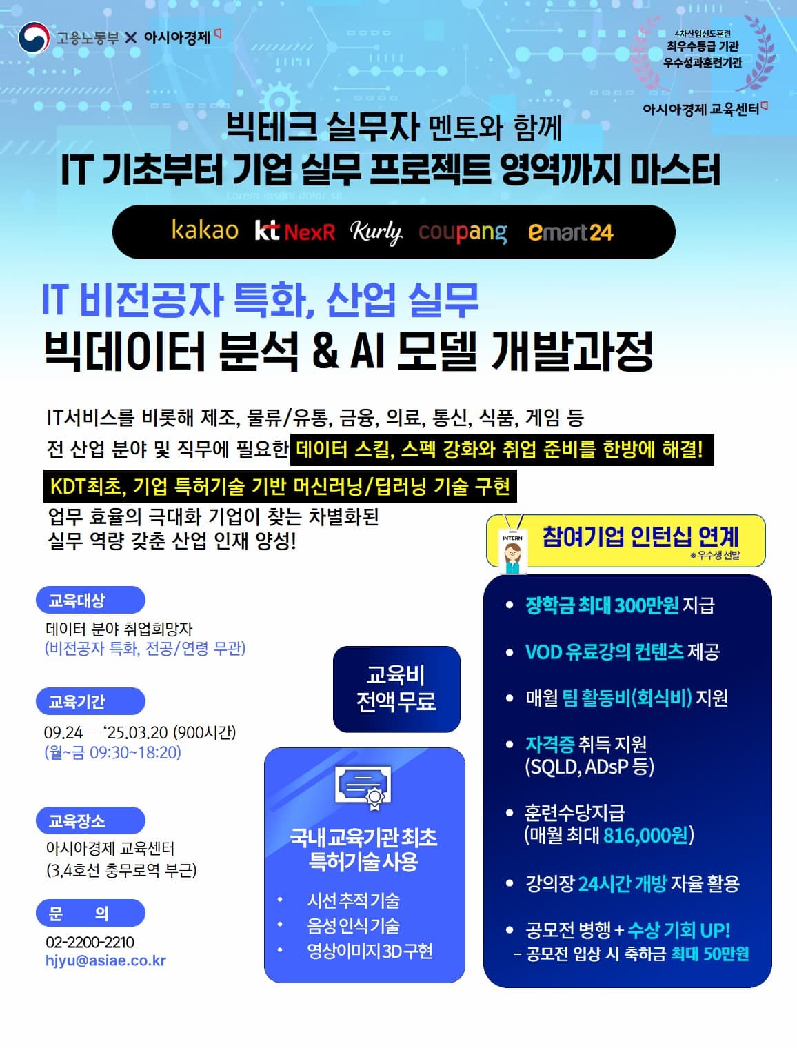 - 산업 실무 빅데이터 분석& AI모델 개발과정 (900시간)