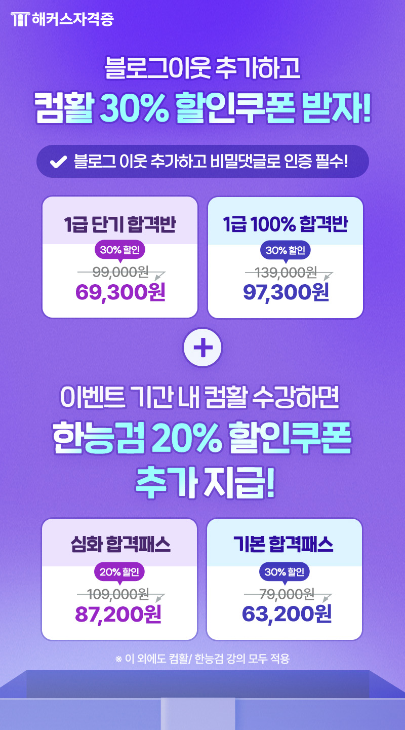 할인쿠폰을 받고 컴활을 수강한 분들에 한해