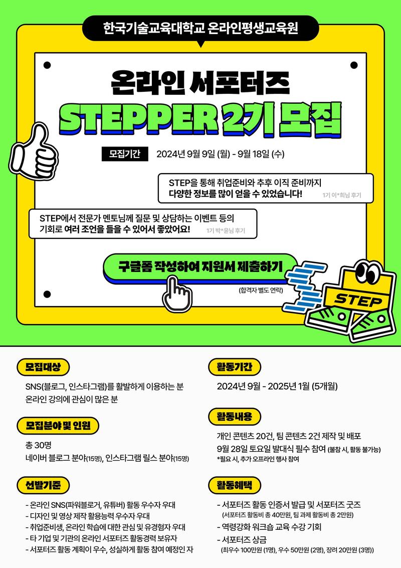 🩵 한국기술교육대학교 온라인평생교육원 온라인 서포터즈 STEPPER 2기 모집 🩵