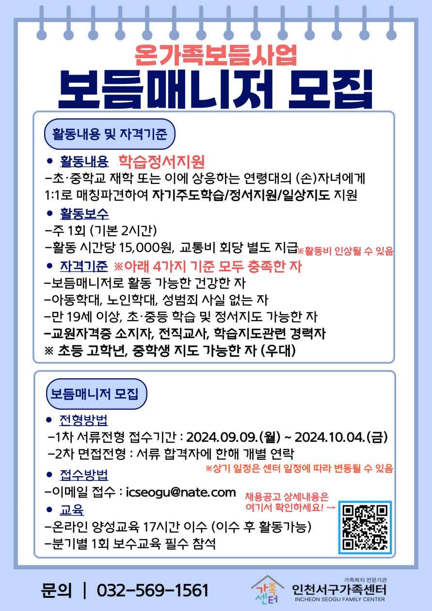 2024년 온가족보듬사업 보듬매니저 모집 공고(~10/04)