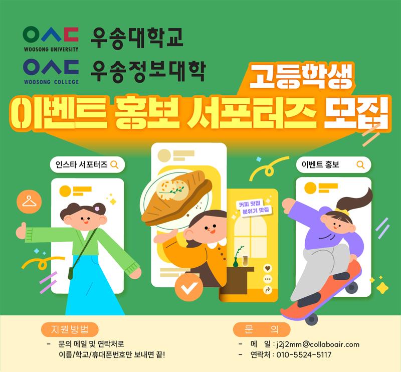 (배포 시, 우송대학교/우송정보대학/우송서포터즈모집 계정을 태그하여 개인 계정에 업로드)
