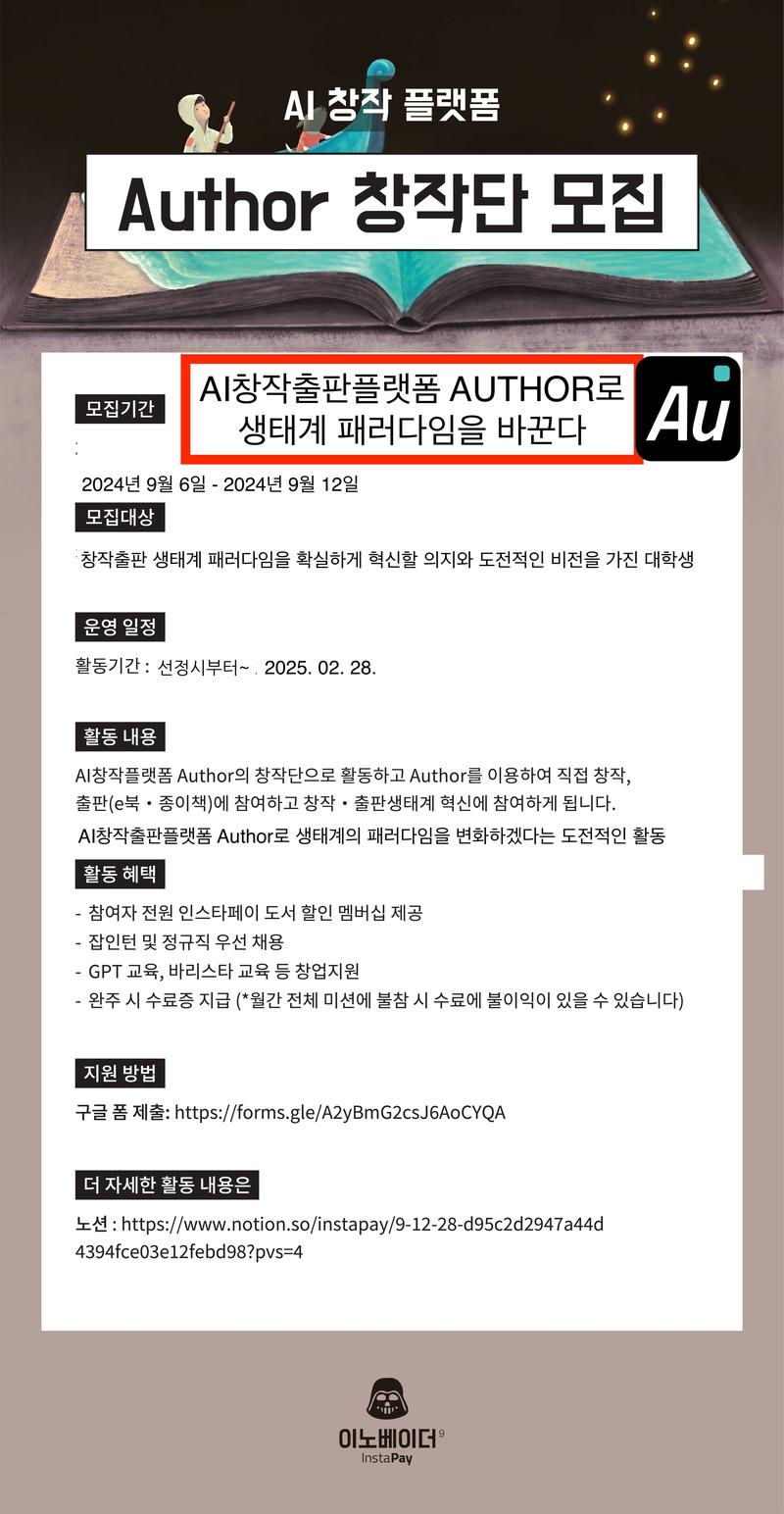 참가자: 전원 InstaPay Author 창작단으로 위촉, Author로 작품 출판 기회 제공