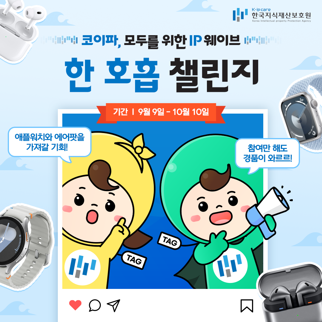 #한국지식재산보호원 #KOIPA #코이파 #한호흡챌린지 #챌린지 #이벤트 #애플워치 #갤럭시워치 #에어팟 #갤럭시버즈 #네이버포인트