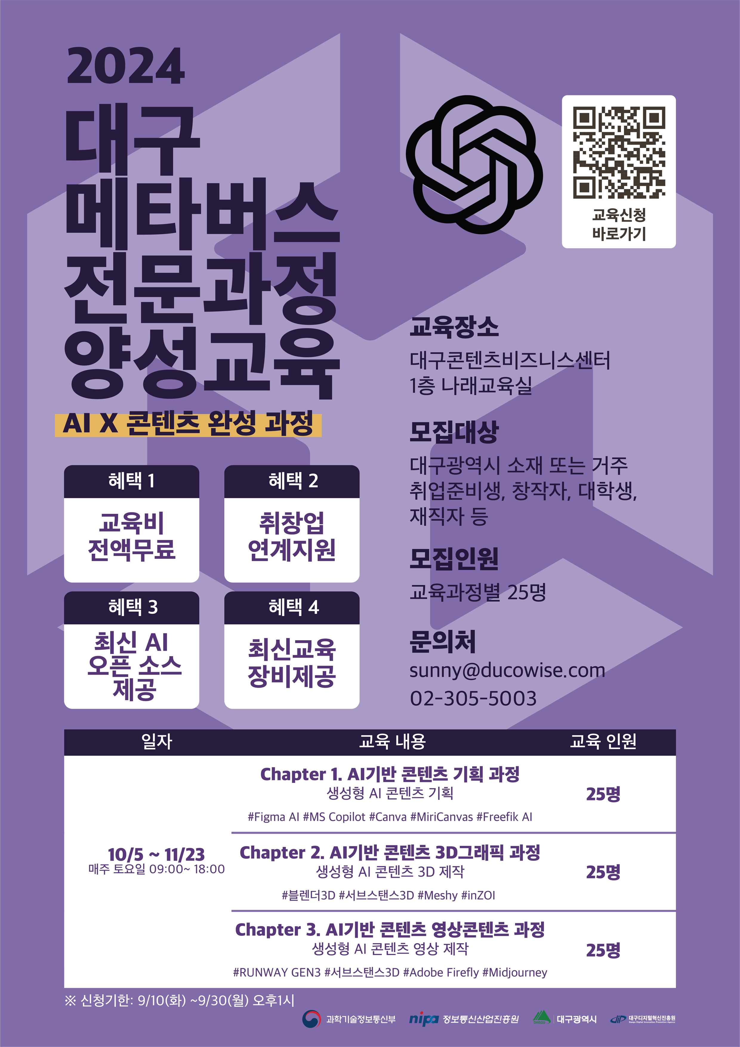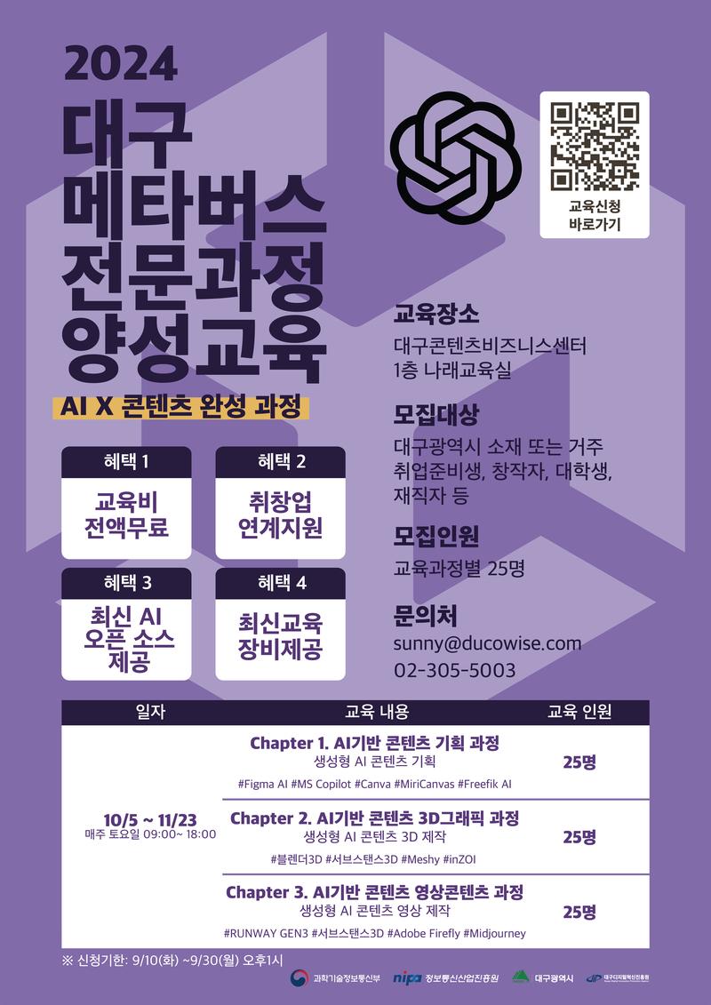📢 AI에 관심있는 얼리어답터 주목!! 2024 대구 메타버스 전문과정 양성교육