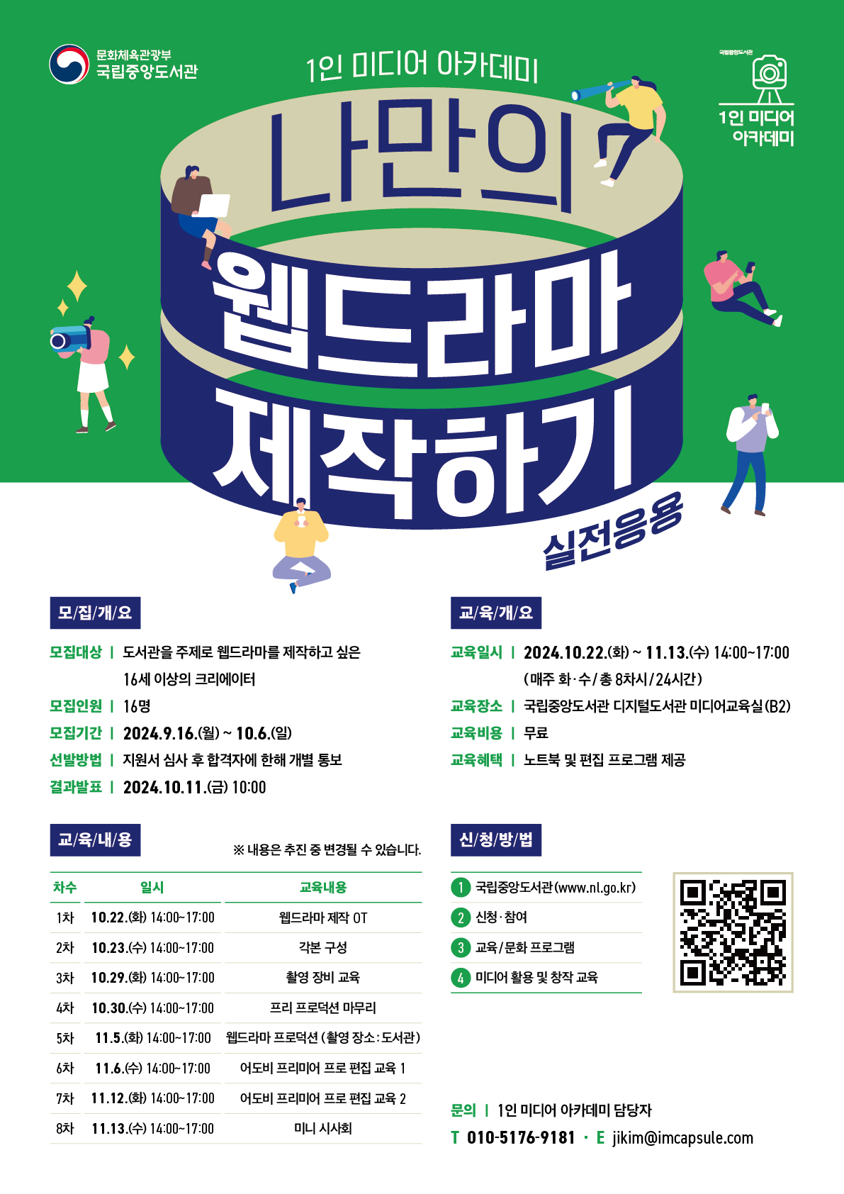 [국립중앙도서관] 나만의 웹드라마 제작하기 (실전응용) 과정 교육생 모집