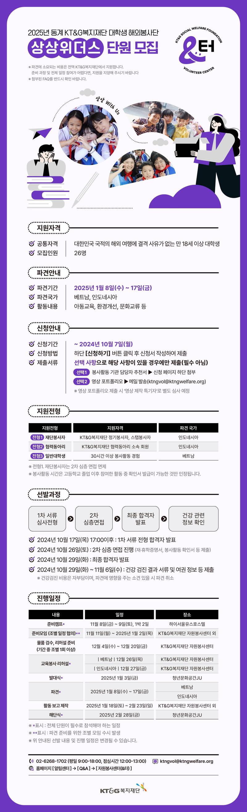 KT&G복지재단에서는 2025년 동계 대학생 해외봉사단 '상상위더스' 단원을 모집합니다.