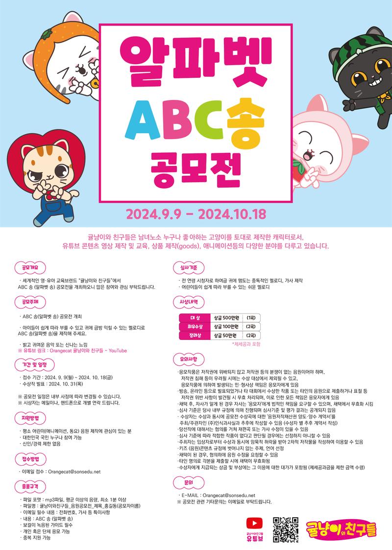 ABC 송 (알파벳 송) 공모전을 개최하오니 많은 참여와 관심 부탁드립니다.