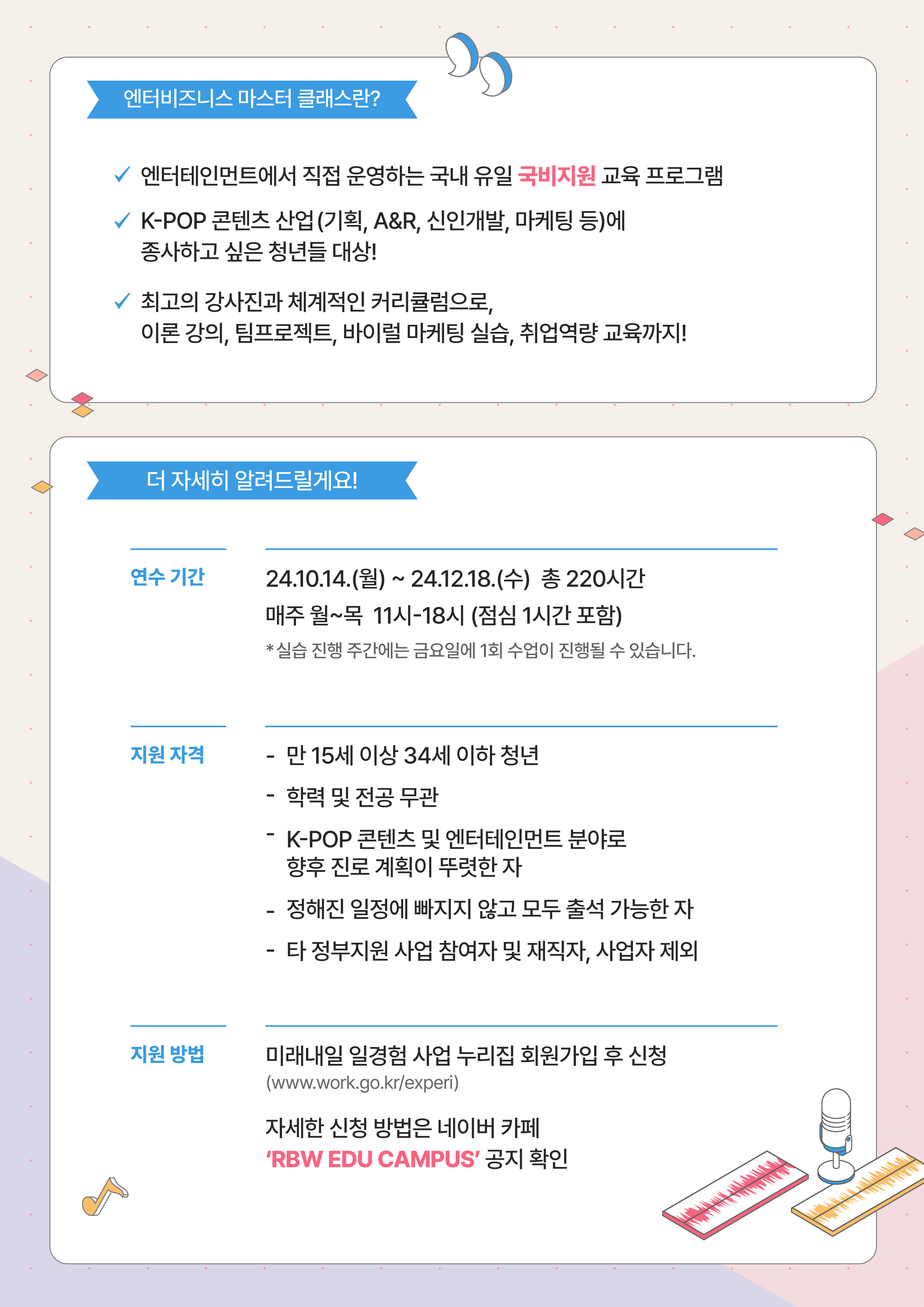 [2024 RBW 엔터비즈니스 마스터 클래스 3기] 모집을 시작합니다!
