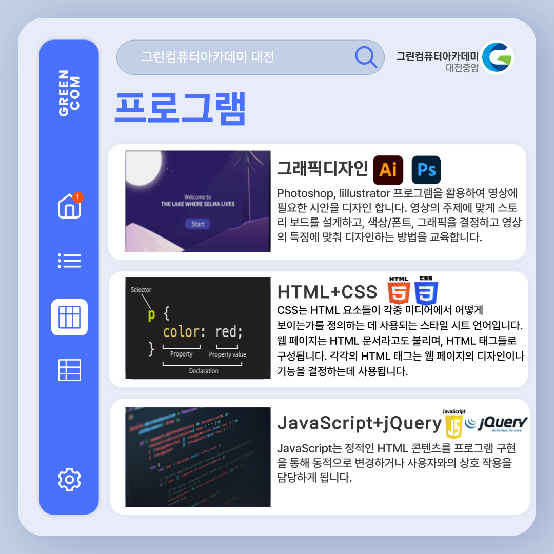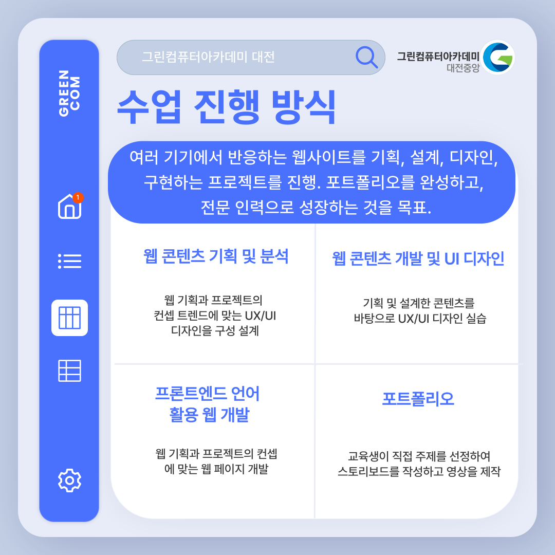 포트폴리오 예시: https://daejeonc.greenart.co.kr/portfolio/portfolio?s_kind=1