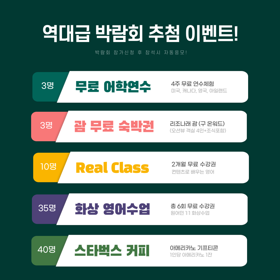 ■ 역대급 사전예약 이벤트 혜택! (리조나레 괌 3박 무료 숙박권, 어학연수 4주 무료수강권 등!)