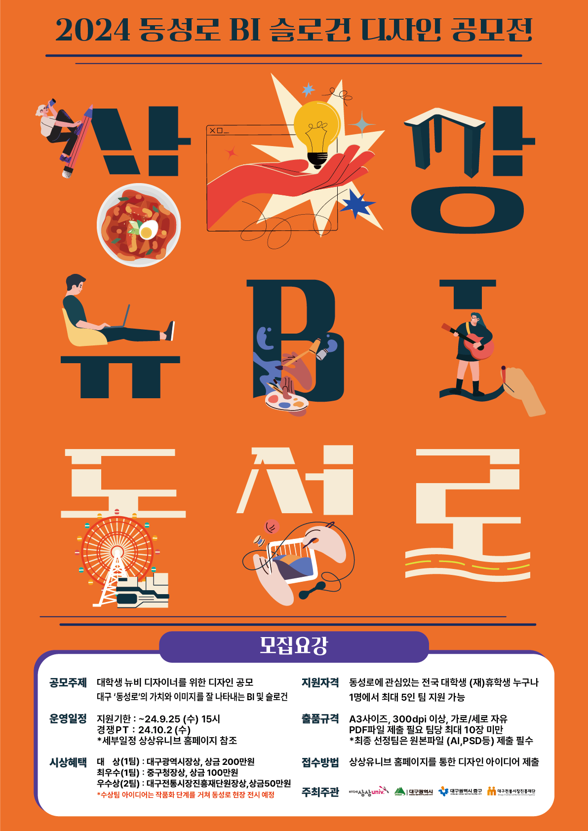 - 수상작에 대한 모든 사용권, 저작권은 대구광역시 및 운영사무국에 귀속되고 공모한 모든 작품에 대한 사용권은 대구광역시가 공유함