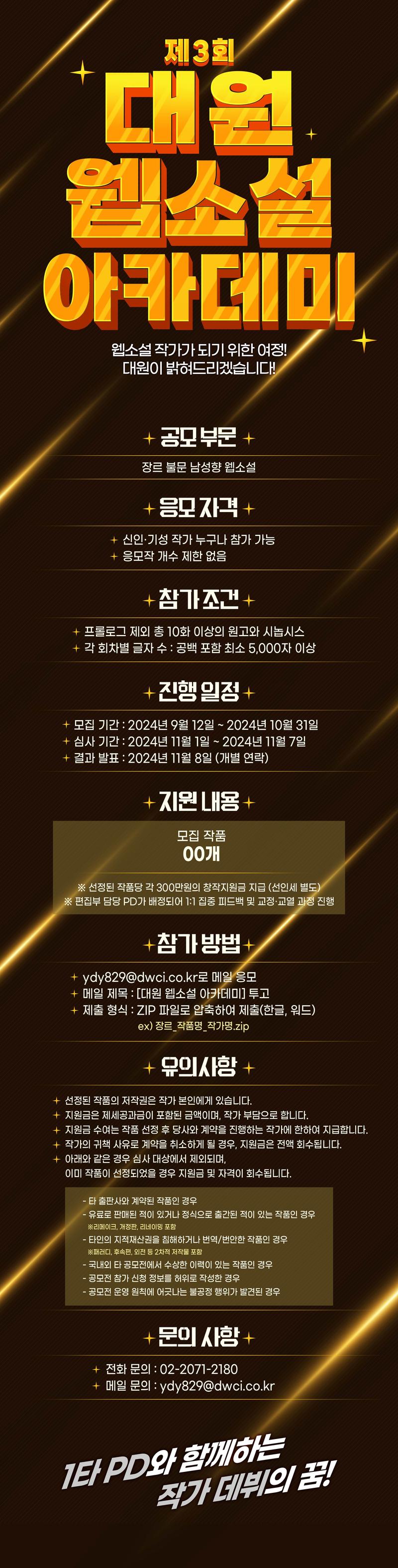 - 메일 제목 : [대원 웹소설 아카데미] 투고
