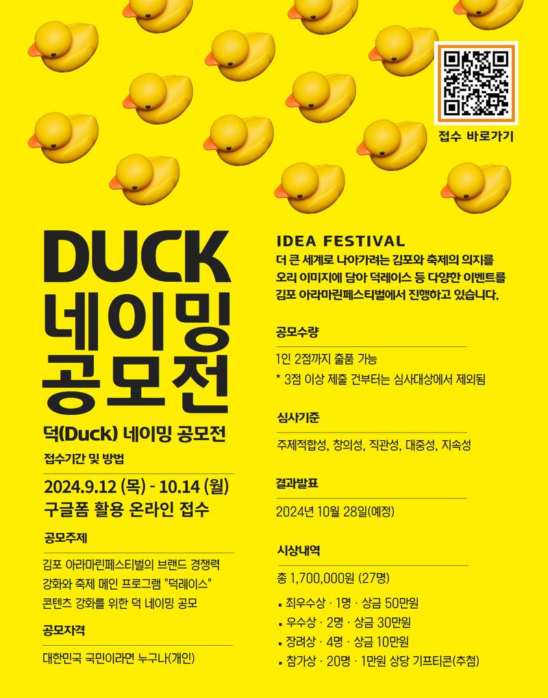⚪ 공 모 명 : 김포 아라마린페스티벌 덕(Duck, 오리)네이밍 공모전