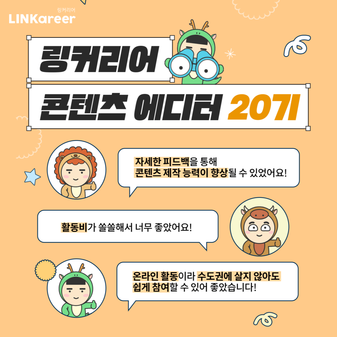 ♥링커리어 콘텐츠 에디터 20기에 많은 관심과 지원 바랍니다 ♥
