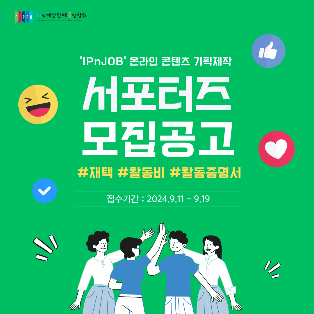 올해 오픈 예정인 'IPnJOB' 포털 사이트의 자체 콘텐츠를 제작해 주실 서포터즈를 모집합니다.