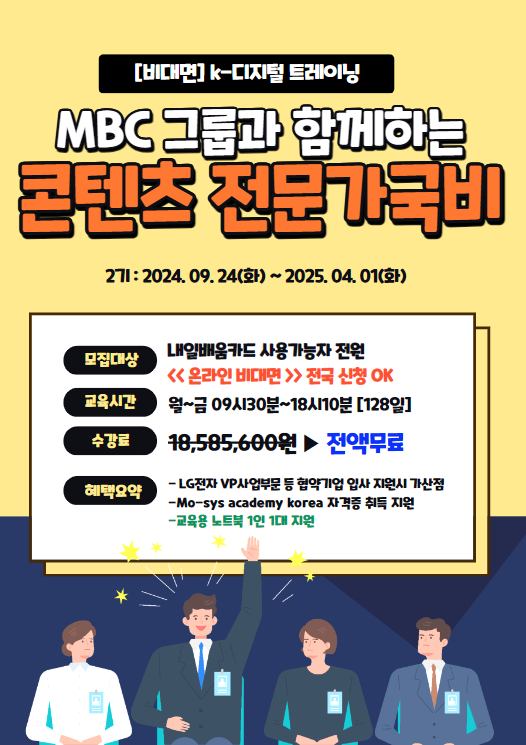 - MBC그룹이 직접 운영하며 MBC+가 인증한 최고의 강사진이 교육