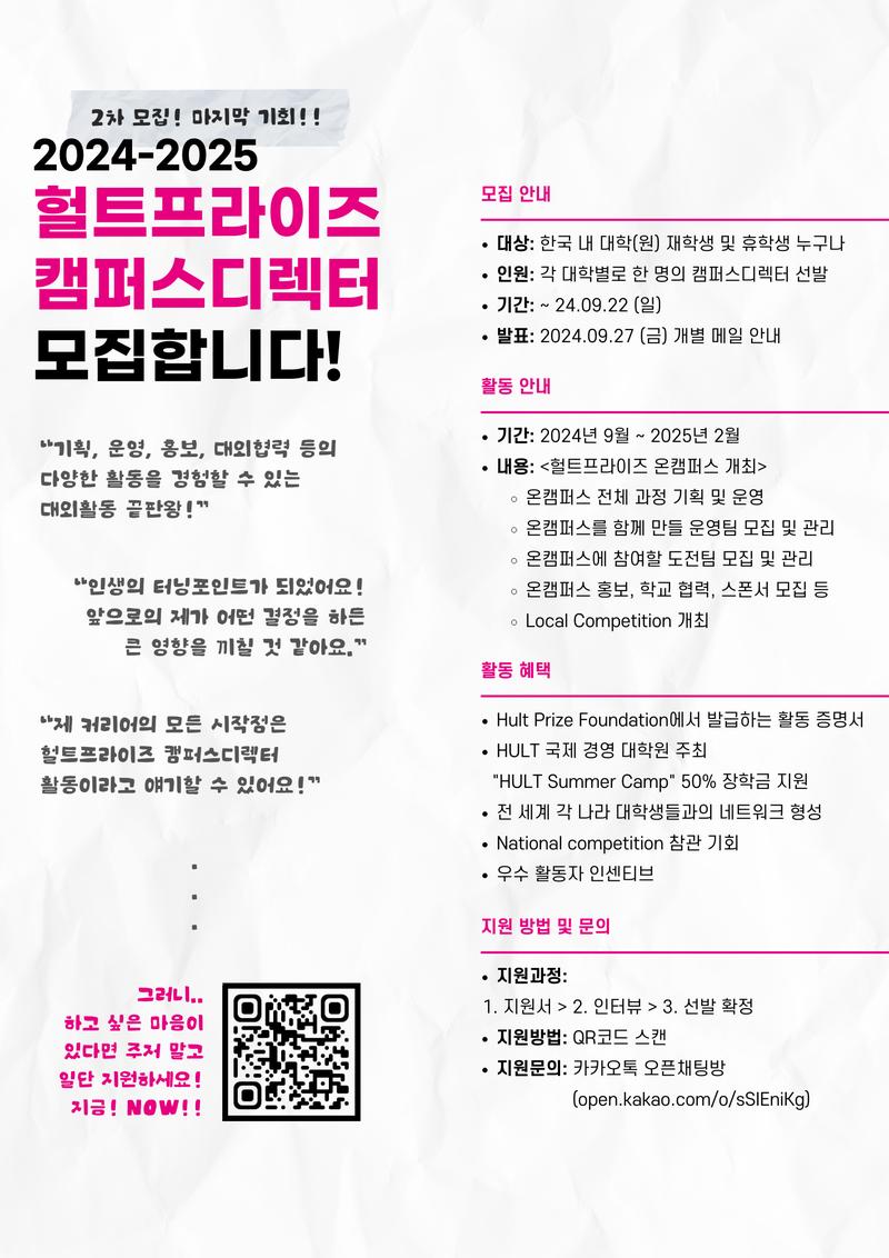 [Hult Prize Korea] 2024-2025 헐트프라이즈 캠퍼스디렉터 2차 모집 시작합니다!(~9/22)