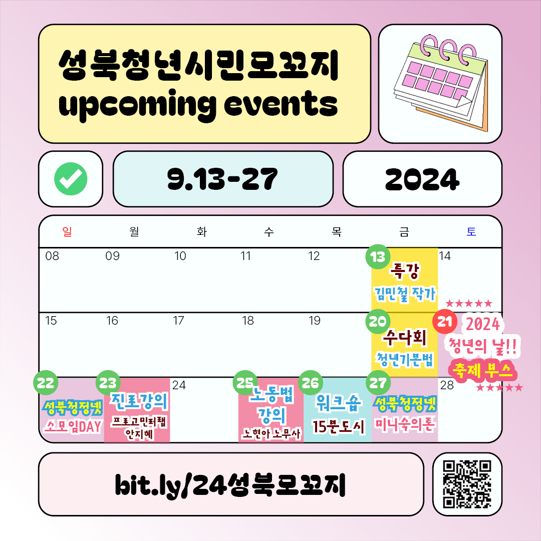 💁♀️신청하기 : bit.ly/24성북모꼬지