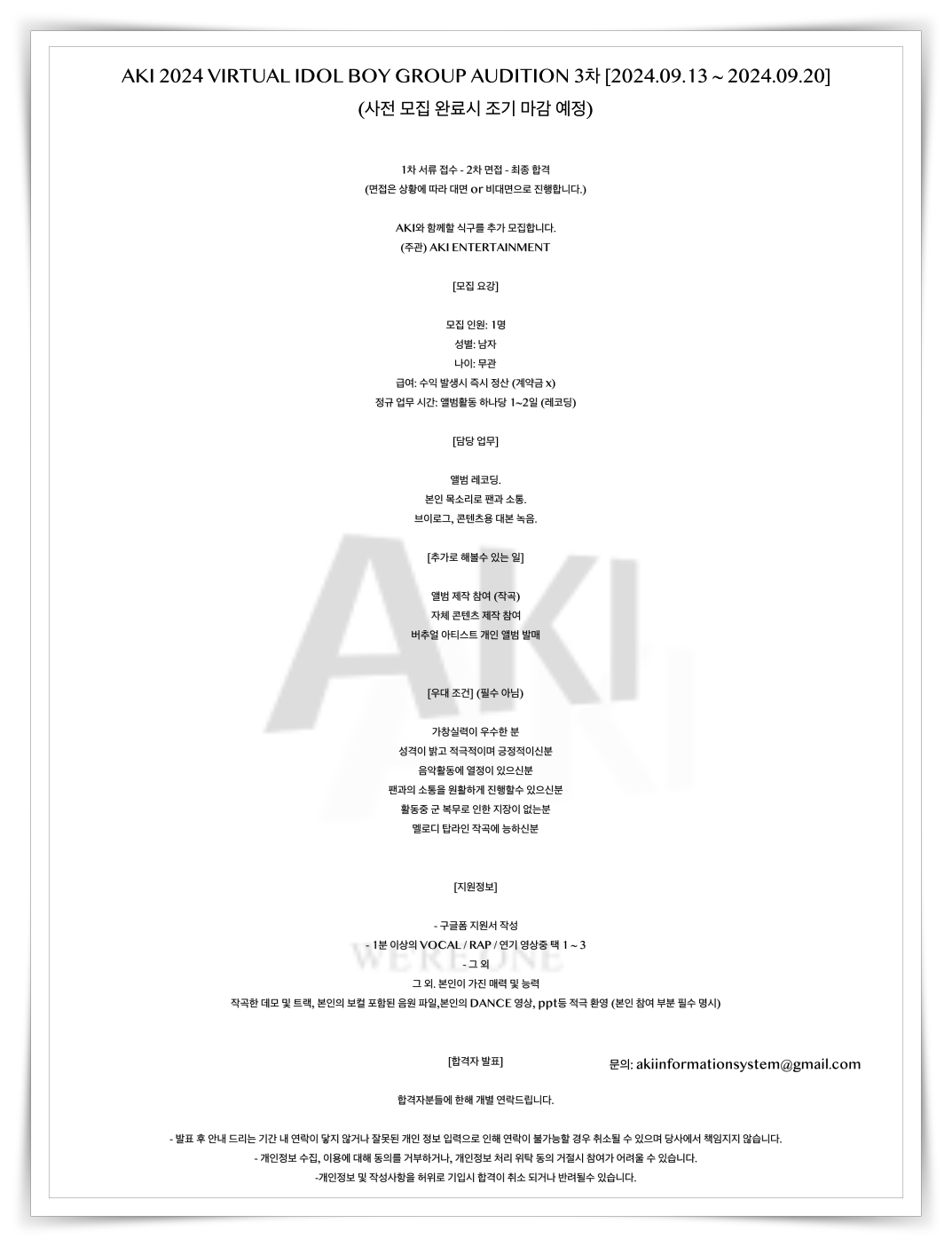 AKI 2024 VIRTUAL IDOL BOY GROUP AUDITION 3차 [2024.09.13 ~ 2024.09.20]