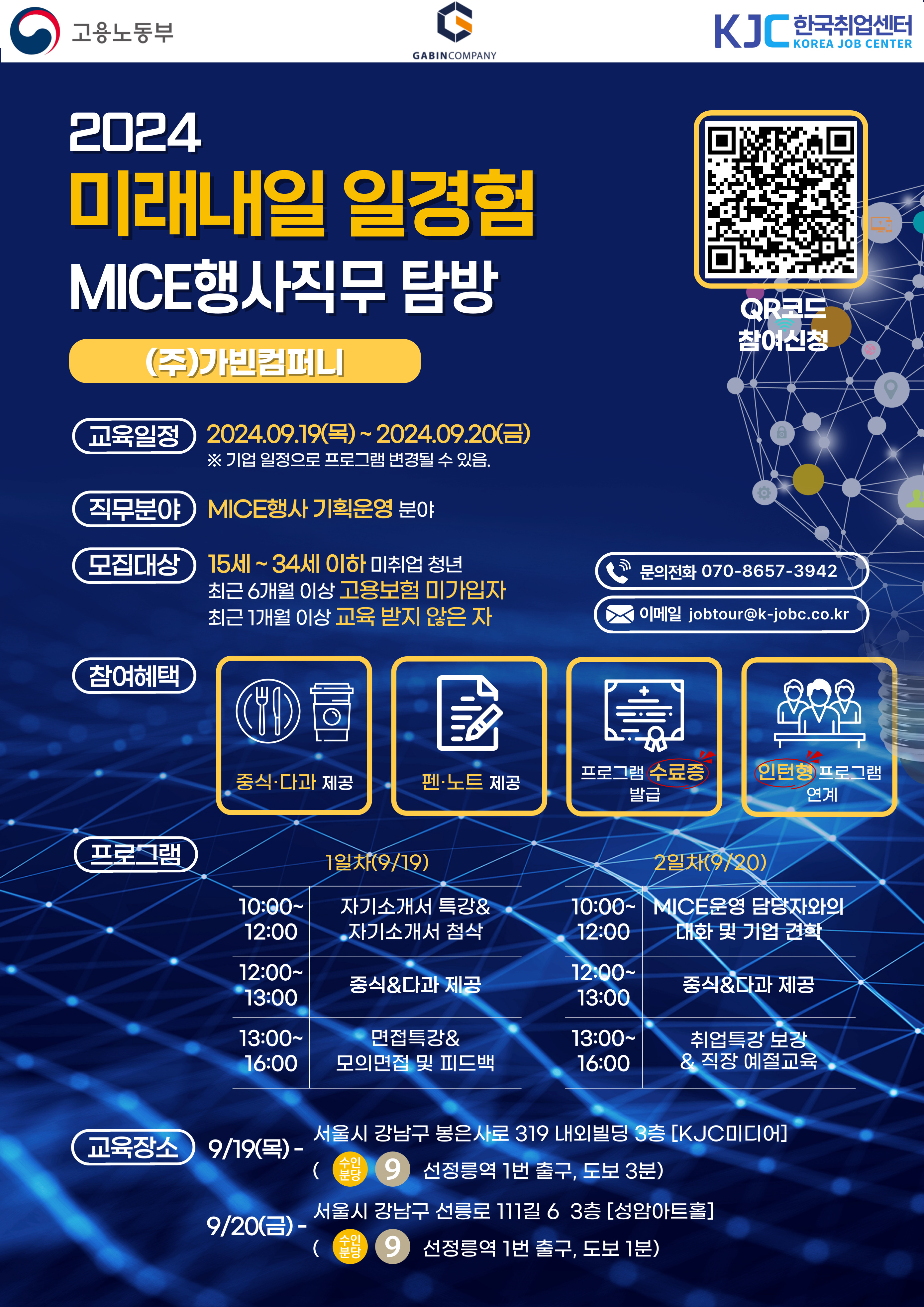 고용노동부에서 주관하는 미래내일 일경험 사업 기업탐방형 프로그램을 진행합니다.
