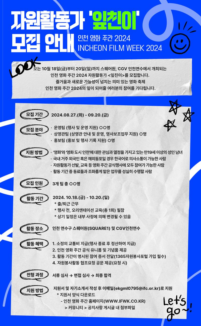 - 자원활동가 선발, 교육 등 인천 영화 주간 공식행사에 모두 참여가 가능한 사람