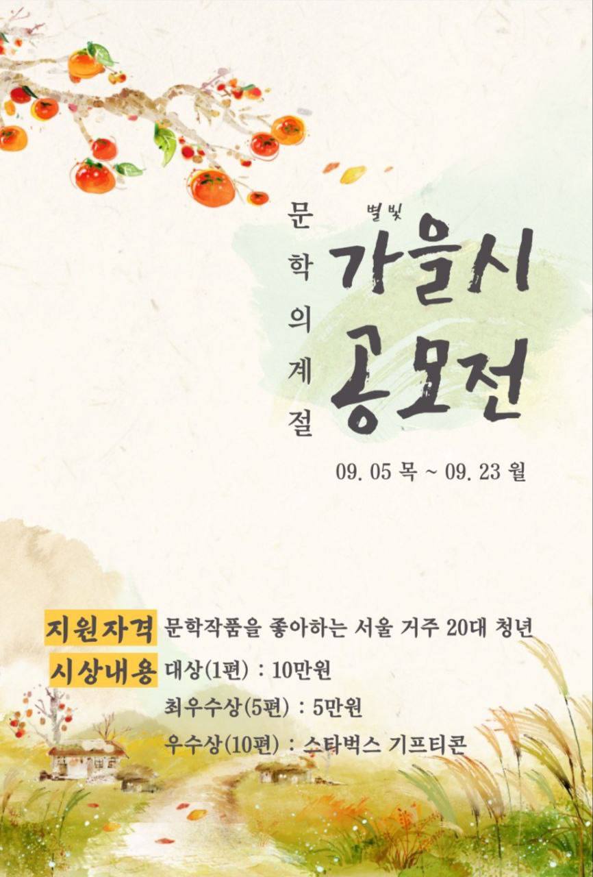 - 20대 청년들의 문학에 대한 관심을 촉진하고 방향성을 제시하고자, 시 공모전을 주최합니다.