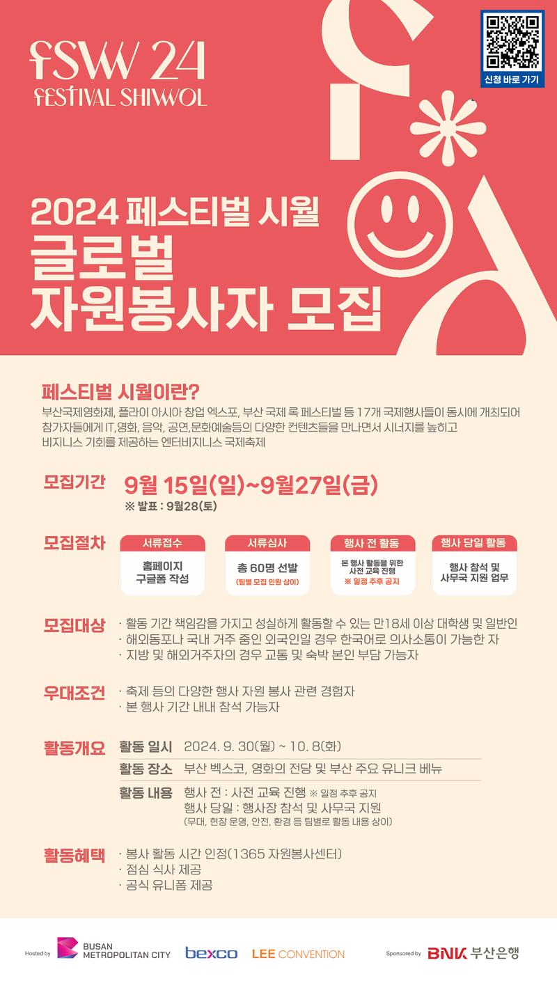 📍모집방법 : ‘페스티벌 시월’ 인스타그램 프로필로 들어가 ‘자원봉사자 모집’ 구글폼 작성!