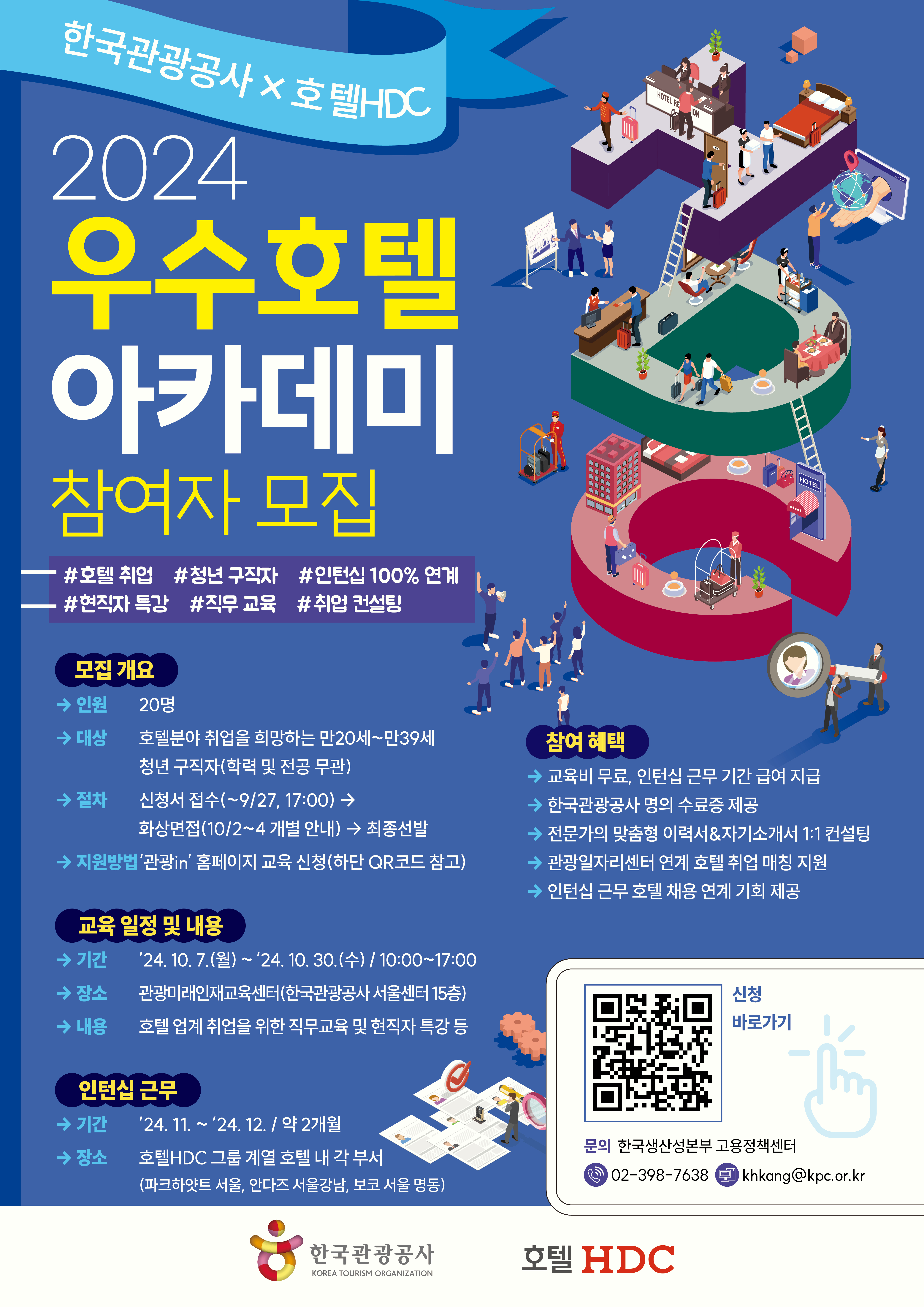 [한국관광공사&호텔HDC] 2024 우수호텔 아카데미 참여자 모집(~9/27 17:00)
