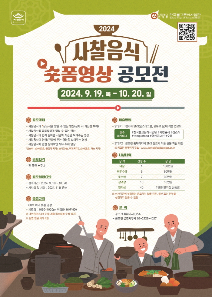 ※ 필수 해시태그 : #한국불교문화사업단, #사찰음식, #삼소식, #templefood, #영상공모전, #숏폼