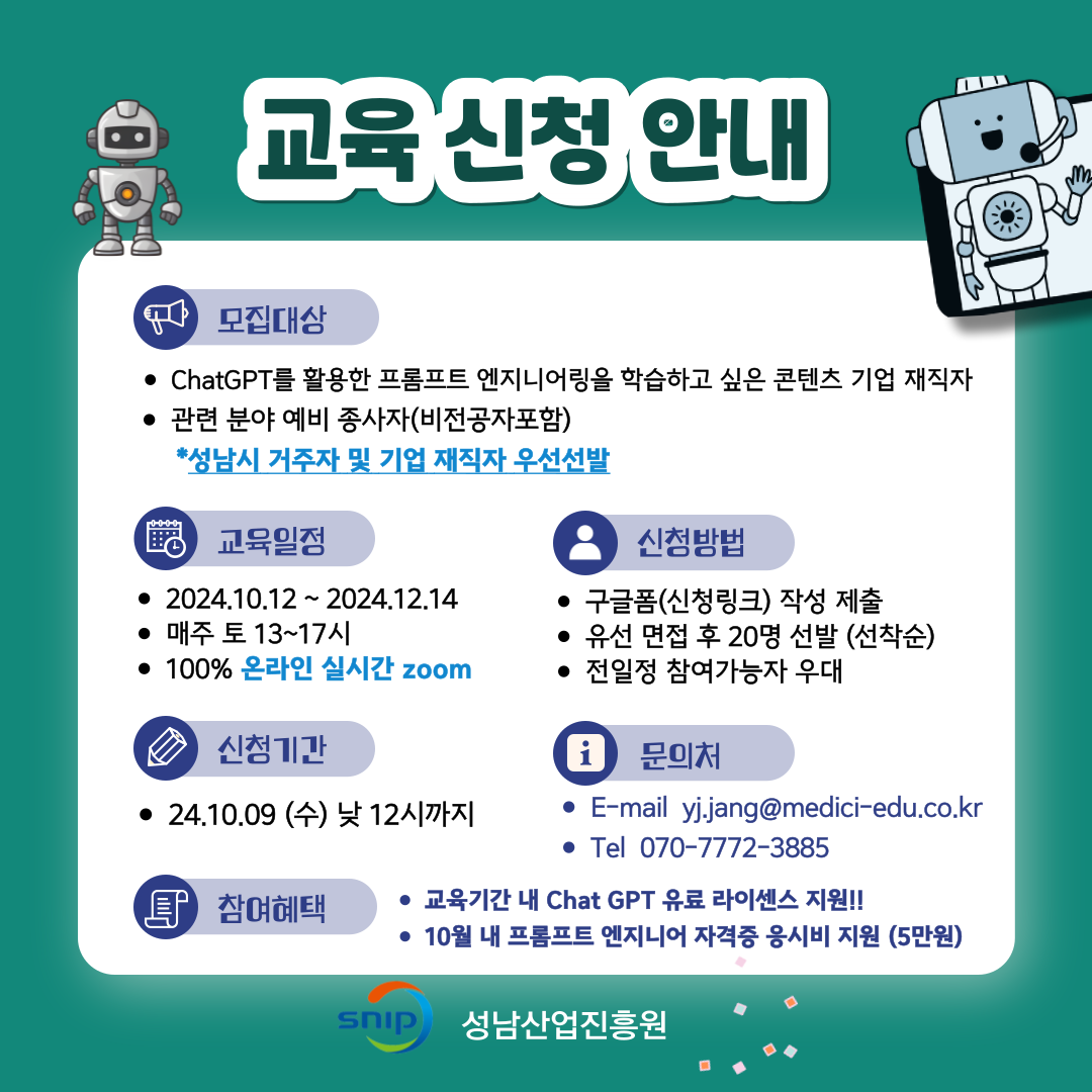 💡 교육문의 : 070-7772-3885 / 010-3669-4160 / yj.jang@medici-edu.co.kr