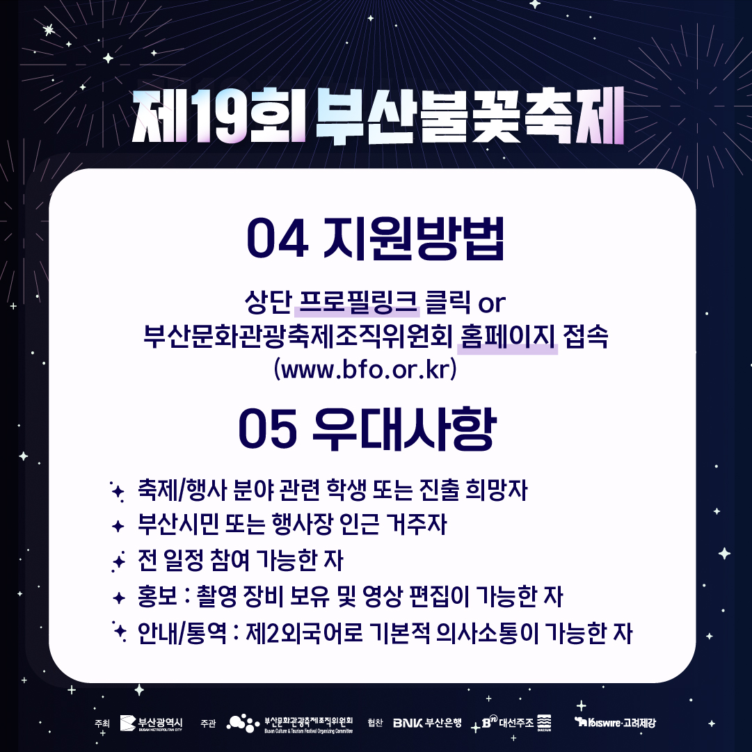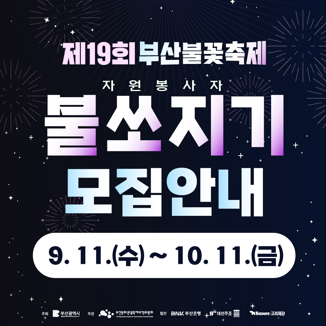 자세한 모집 공고 및 불쏘지기 지원은 부산문화관광축제조직위원회 홈페이지를 참고해 주시길 바랍니다.