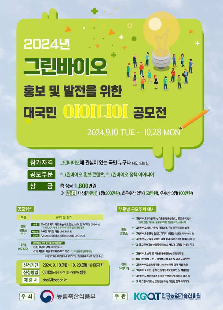 농림축산식품부 / 2024년 그린바이오 홍보 및 발전을 위한 대국민 아이디어 공모전