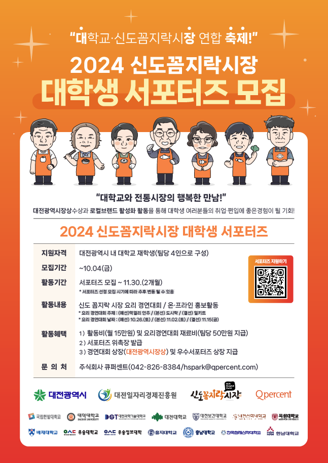 대전 동구에 위치한 '신도꼼지락시장'에 MZ세대를 유입하고 이를 극대화 하기위한 로컬브랜드 사업의 일환으로 '2024 신도 꼼지락 시장 대학생 서포터즈'를 모집합니다.