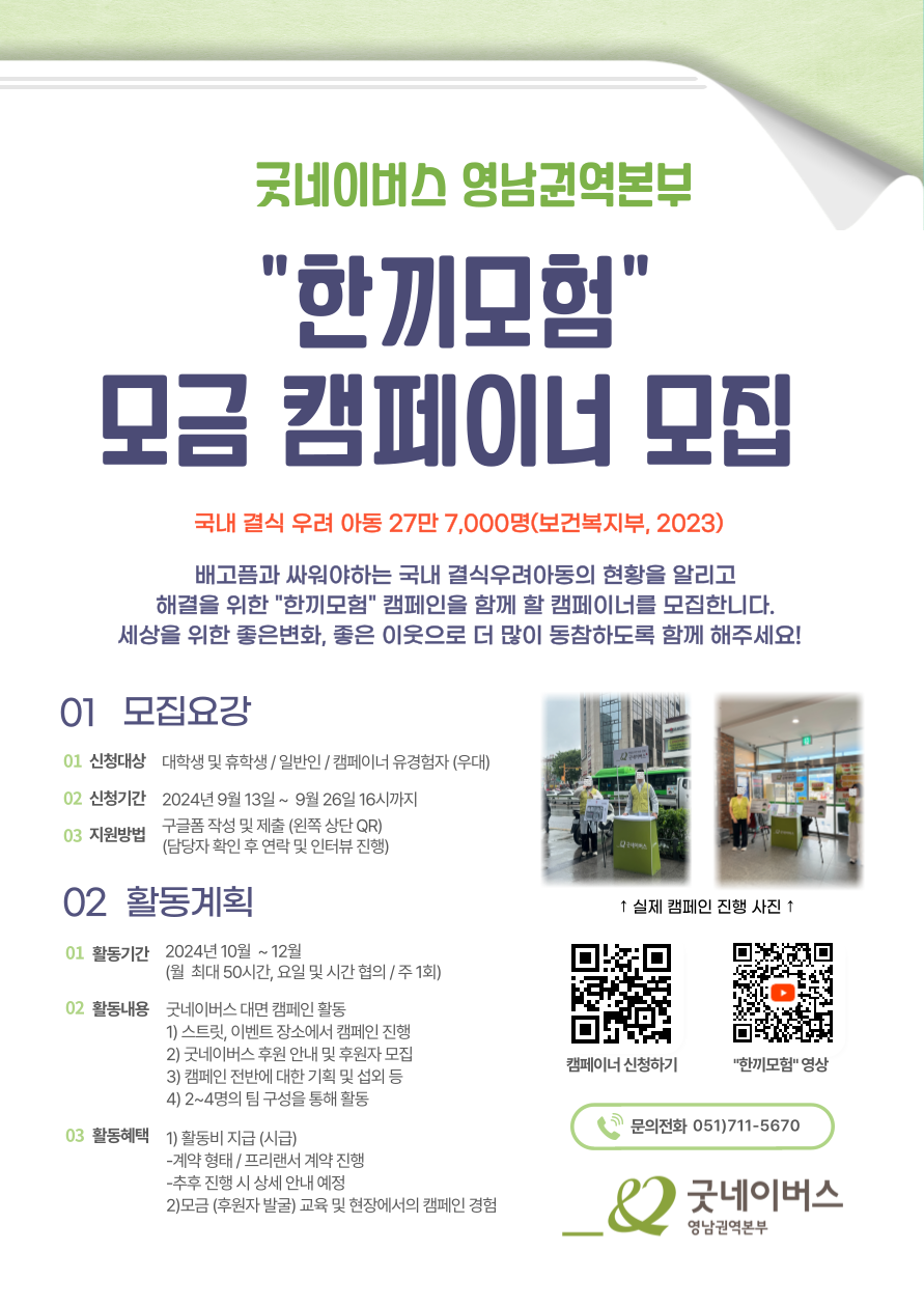 - 굿네이버스 영남권역본부 국내 결식우려아동 지원 캠페인 "한끼모험" 캠페이너 모집