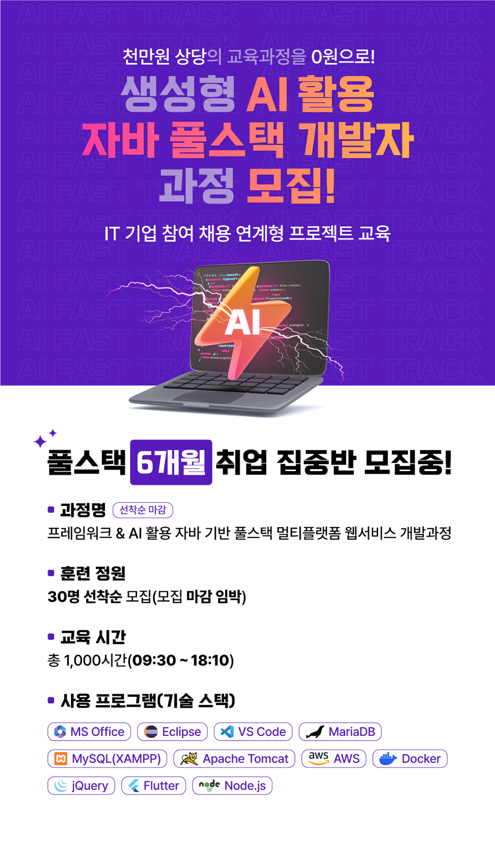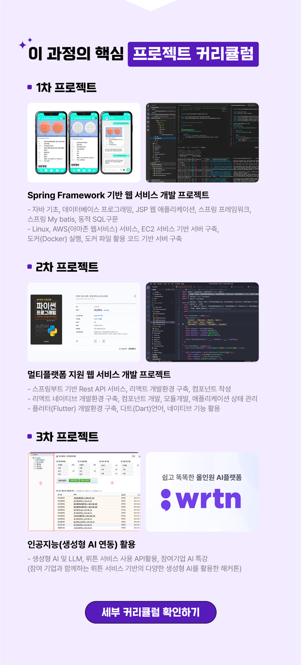 [강남 그린컴퓨터아카데미] 프레임워크 & AI 활용 자바 기반 풀스택 멀티플랫폼 웹서비스 개발과정