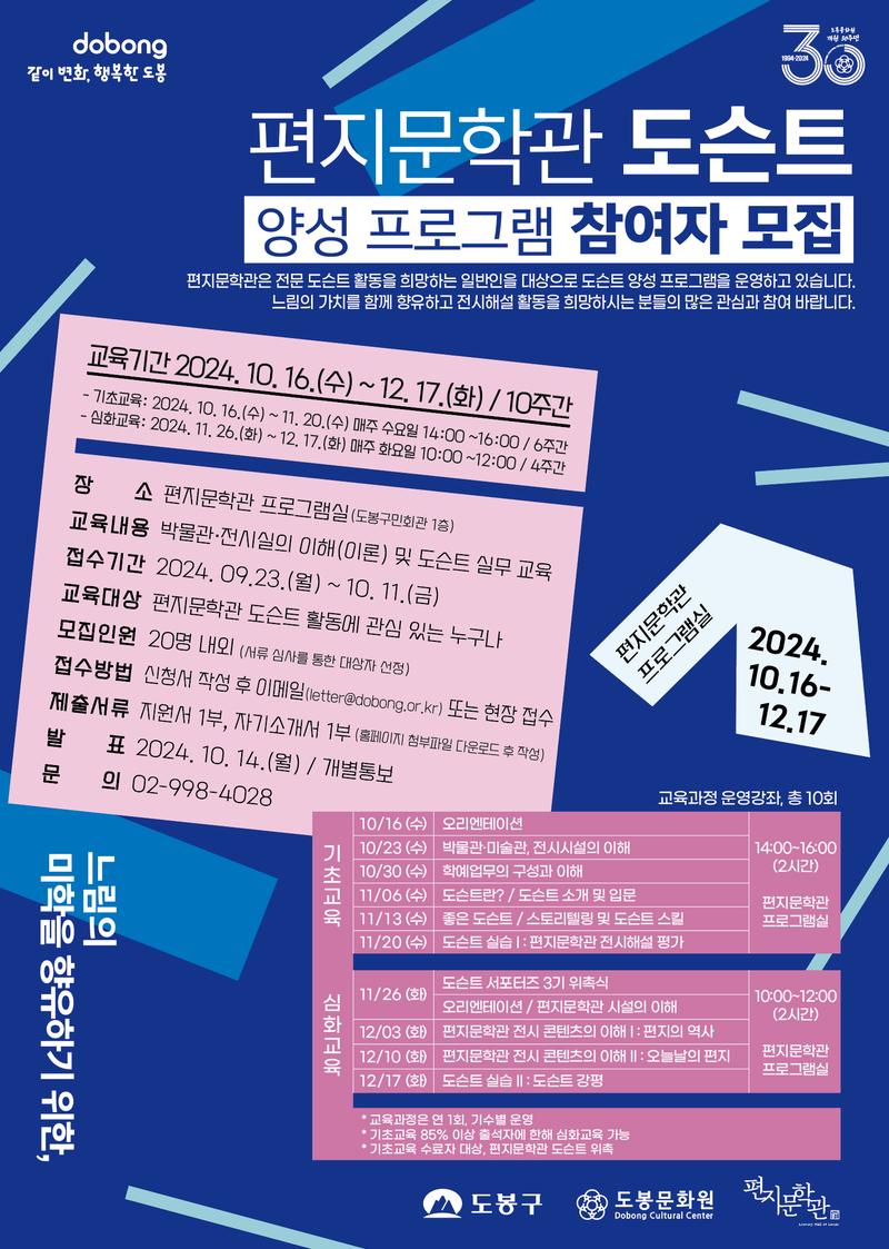 접수방법: 신청서 작성 후 이메일(letter@dobong.or.kr) 또는 현장접수