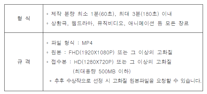 ㅇ 분야 : 영상(1~3분이내, 애니메이션 포함)