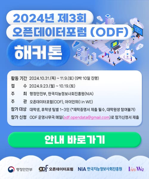 자세한 내용은 오픈데이터포럼 홈페이지/공공데이터포털/NIA 누리집에서 확인하세요.