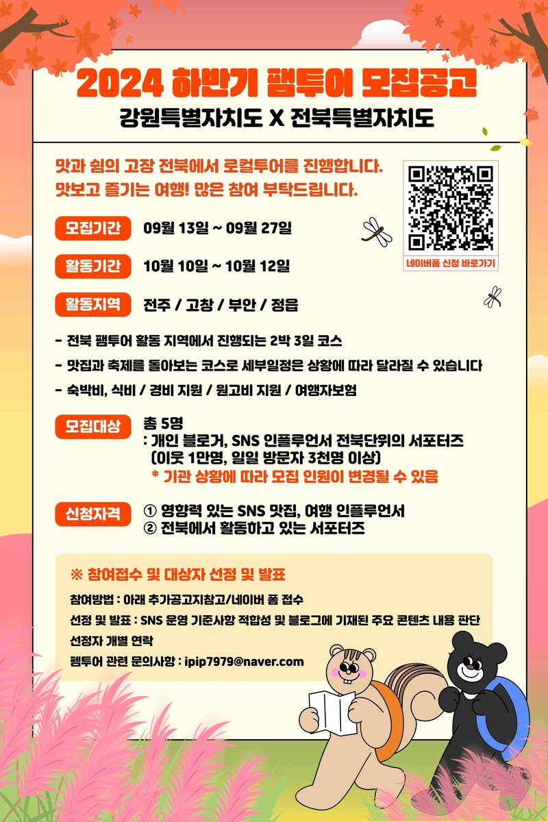 신청자격 : 전북특별자치도 시, 군 지역 2박 3일 일정을 전부 참가 가능한 자