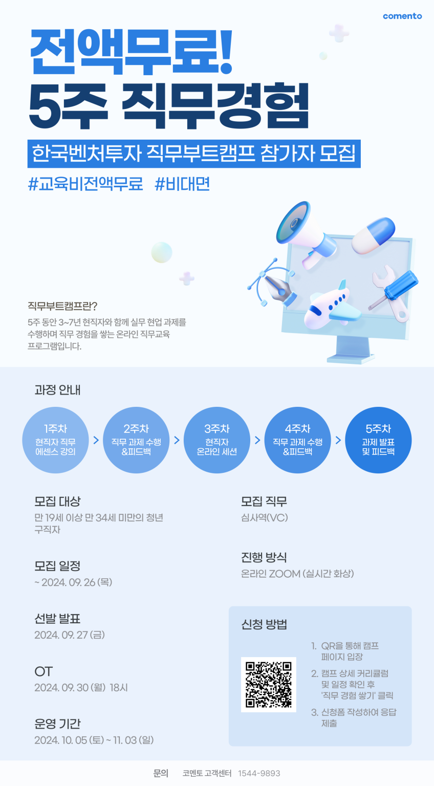 - 5주간 현직자와 함께 심사역(VC) 직무를 경험하고 역량을 성장시키는 교육 프로그램입니다.
