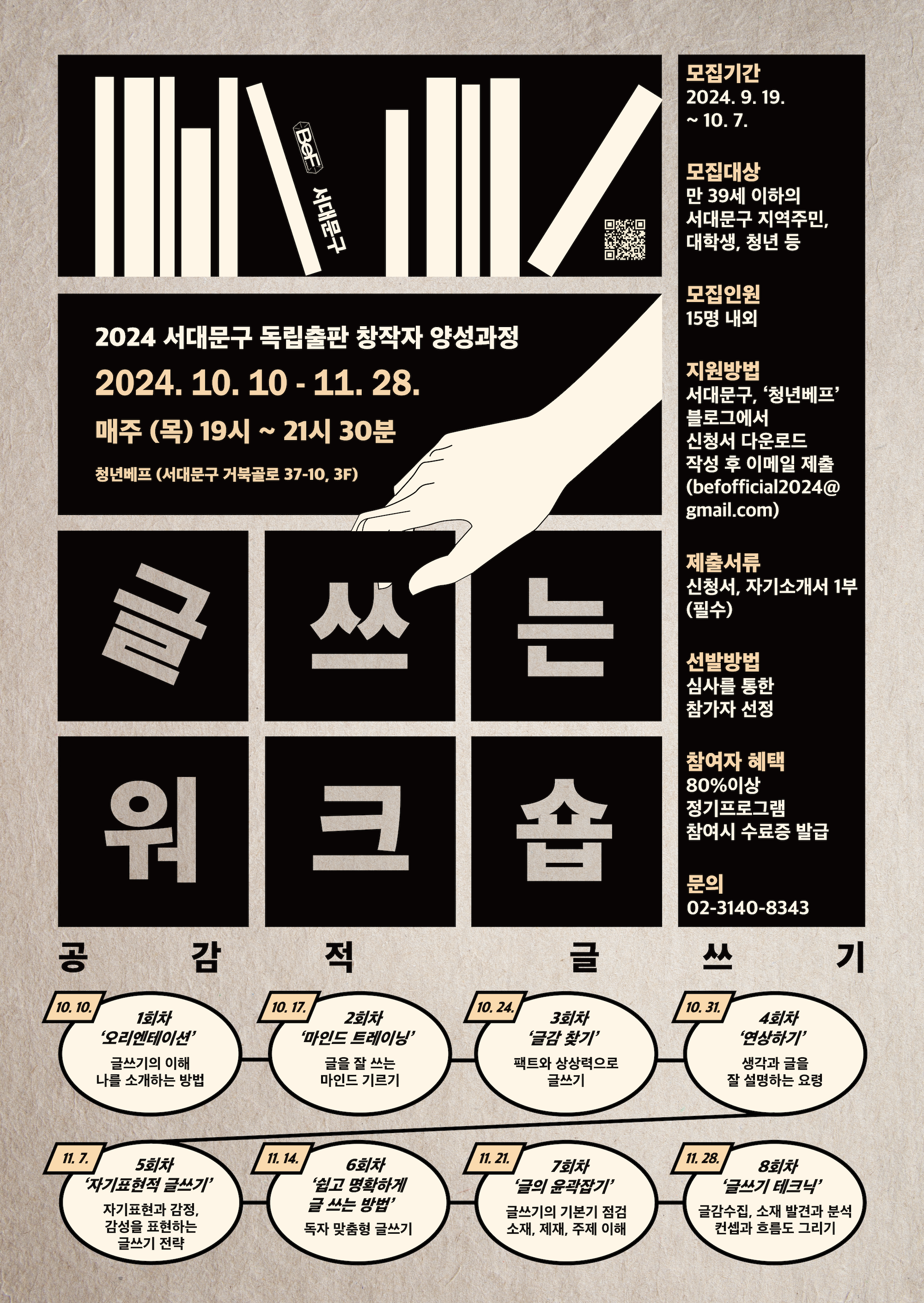 2024 서대문구 독립출판 창작자 양성과정 <글 쓰는 워크숍> 공감적 글쓰기 참가자를 모집합니다!