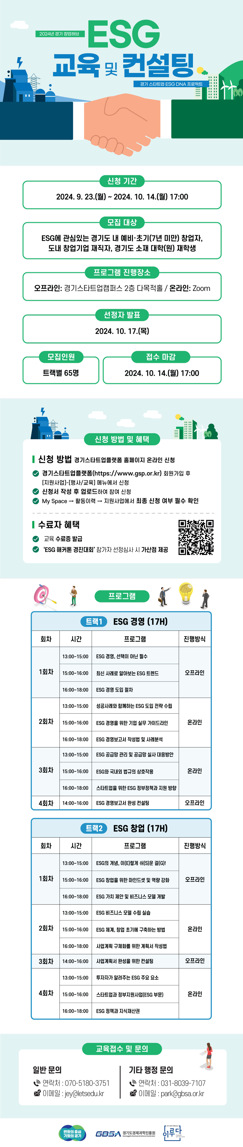 - ESG 창업(17H): 2024.10.28(월) ~ 2024. 10.31(목)