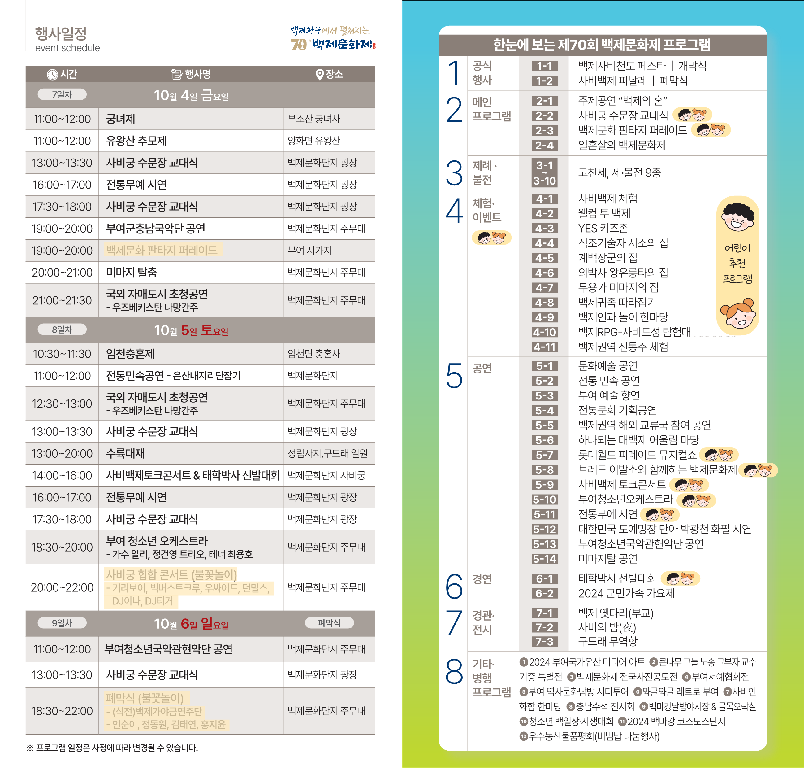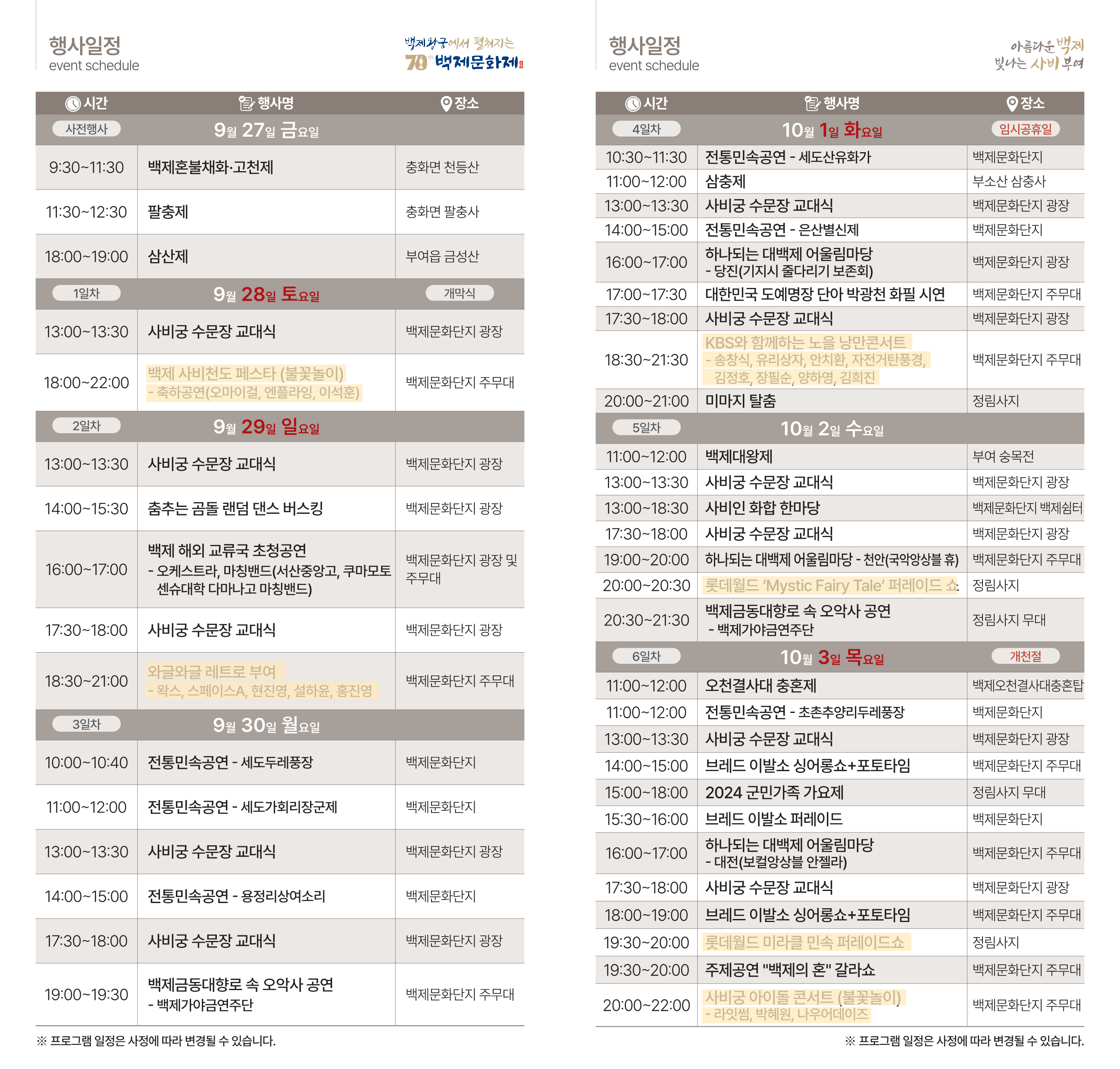 - 힙합 콘서트, 불꽃축제 등 백제문화제 행사 무료 관람