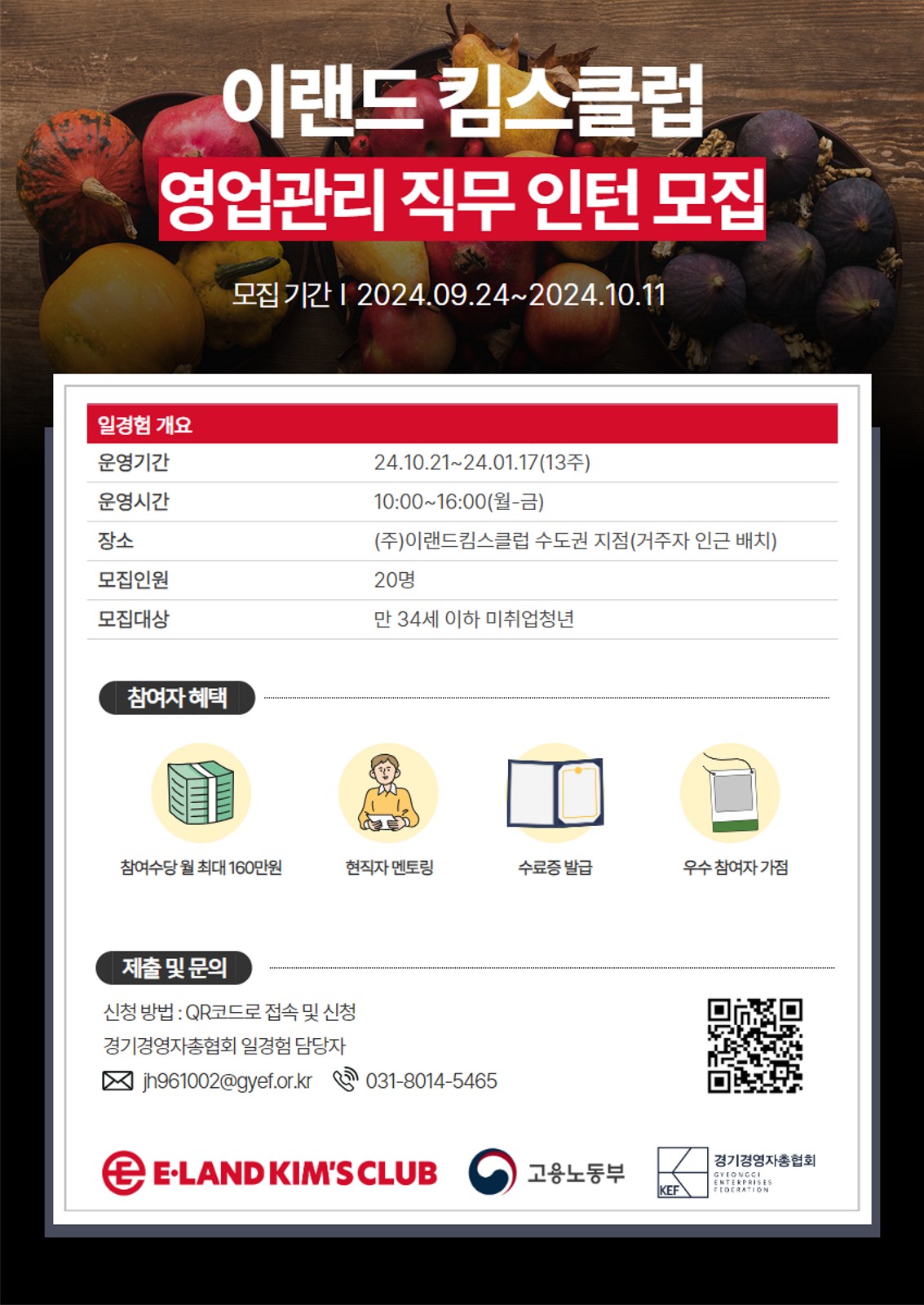장소 : (주)이랜드킴스클럽 서울/경기 16개 지점(참여자 희망 지점 우선 배치)