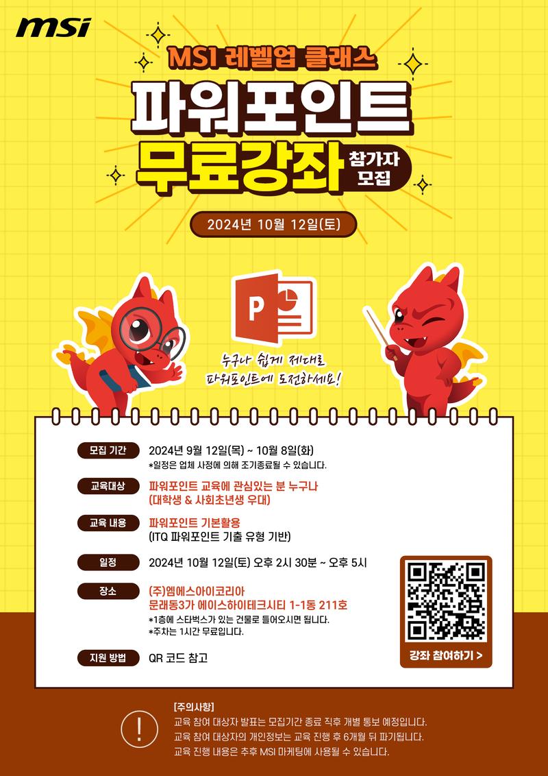 MSI 노트북이 파워포인트 무료강좌 교실을 운영합니다.
