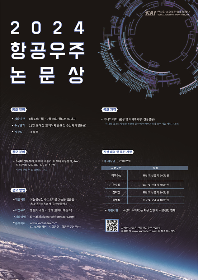 [한국항공우주산업] 2024 항공우주 논문상 공모전(~09/30)